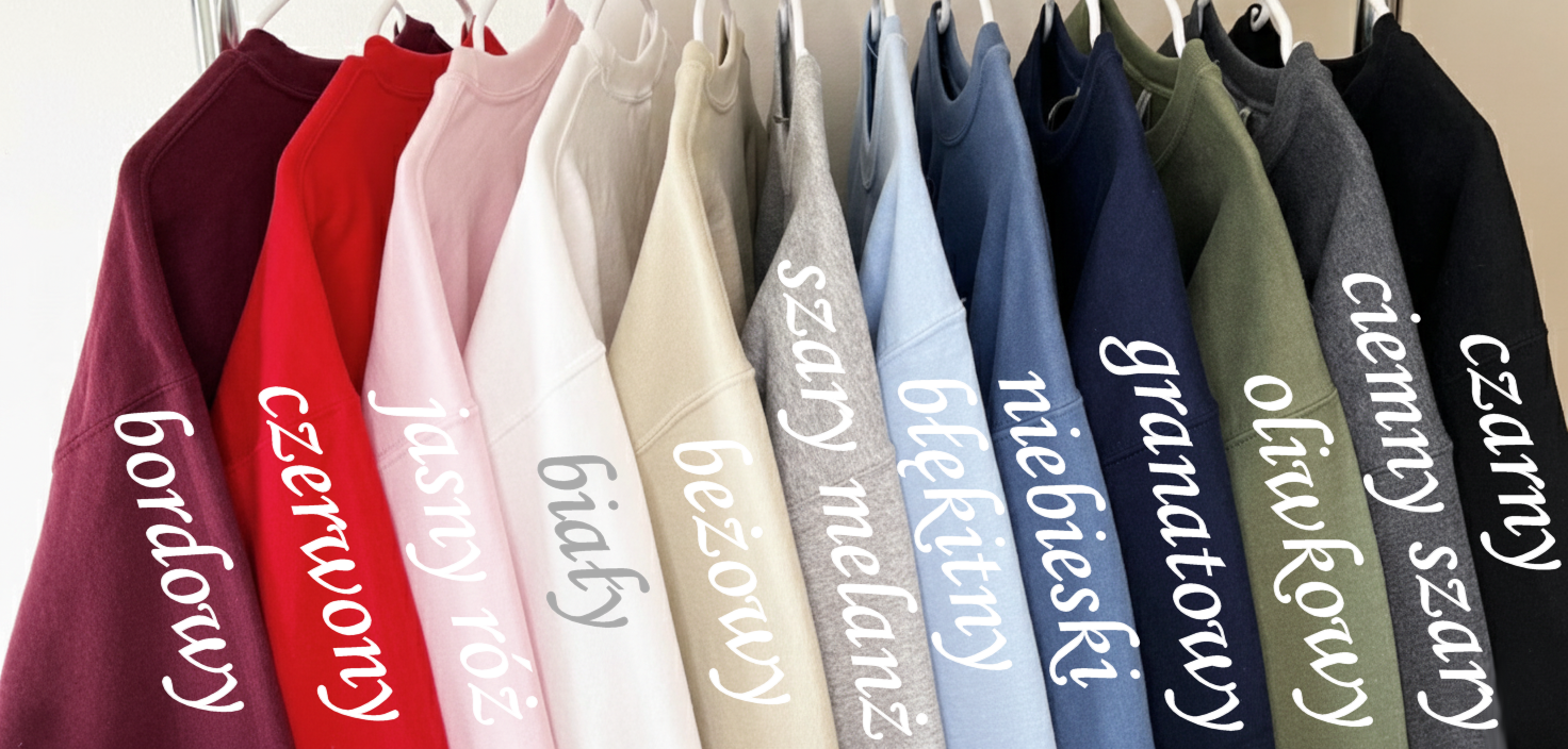 - Kupujesz bluzę, opisujesz jej rozmiar i kolor. Prosimy też o info czy ma być kaptur czy bez oraz jaki kolor nici użyć do obwódki literek :)