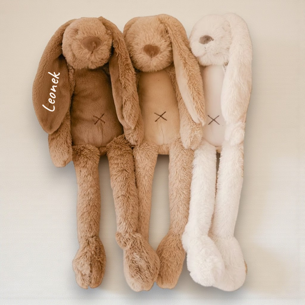 Personalizowana pluszowa maskotka WŁOCHATY KRÓLICZEK Z DŁUGIMI NOGAMI, zabawka z imieniem dziecka.