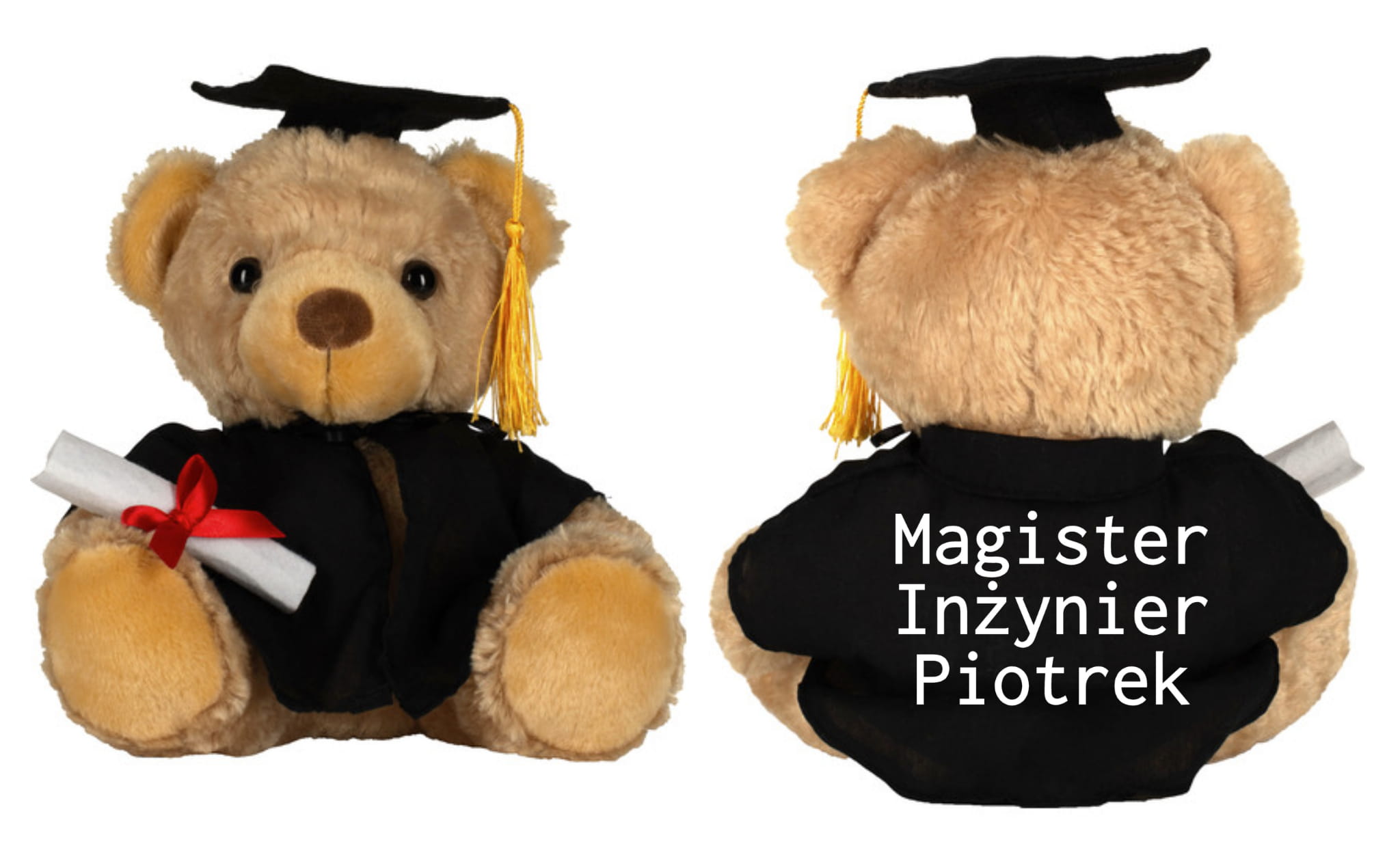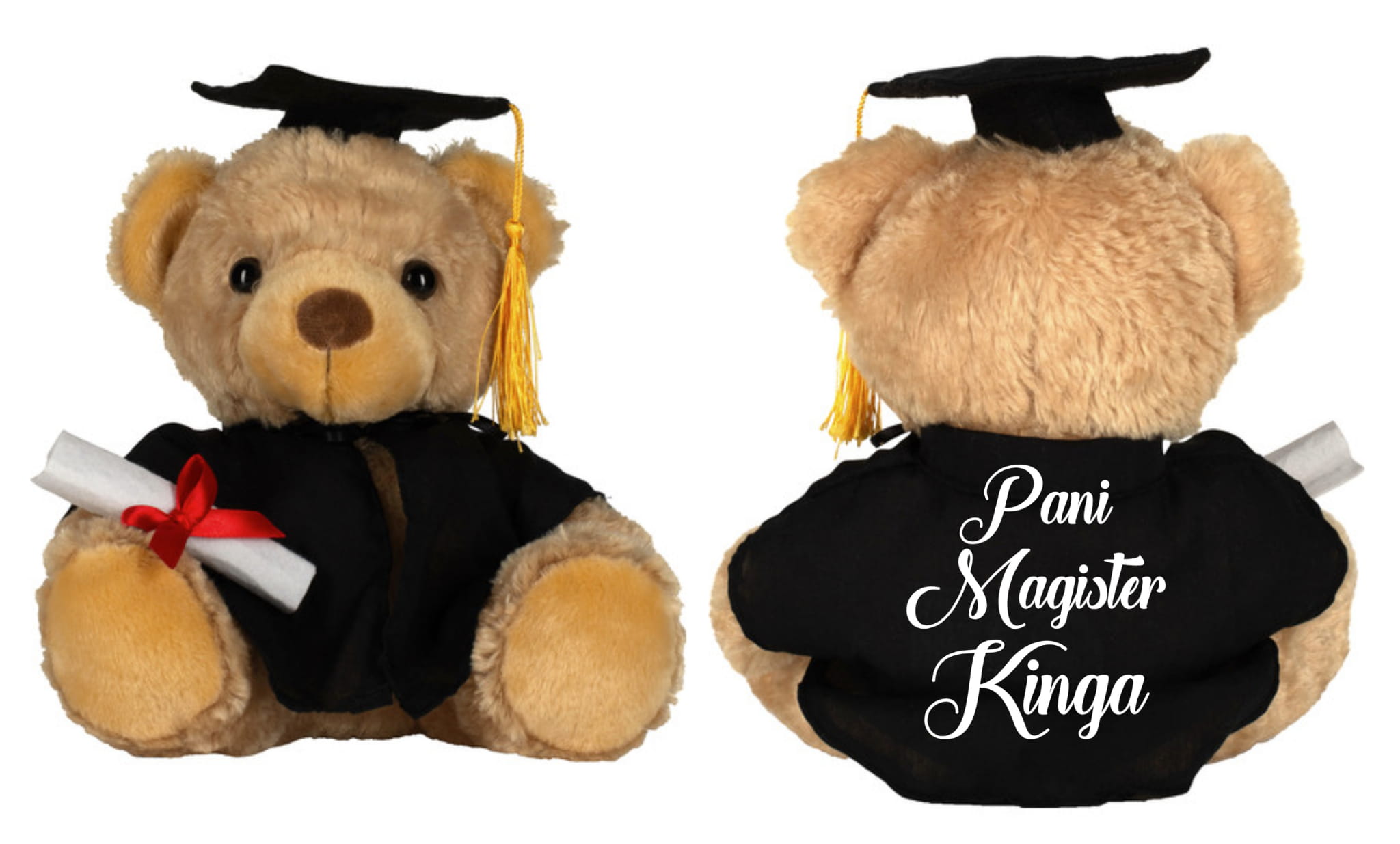 Miś pluszak dyplom absolwent magister inżynier prezent imię maskotka obrona pracy licencjat
